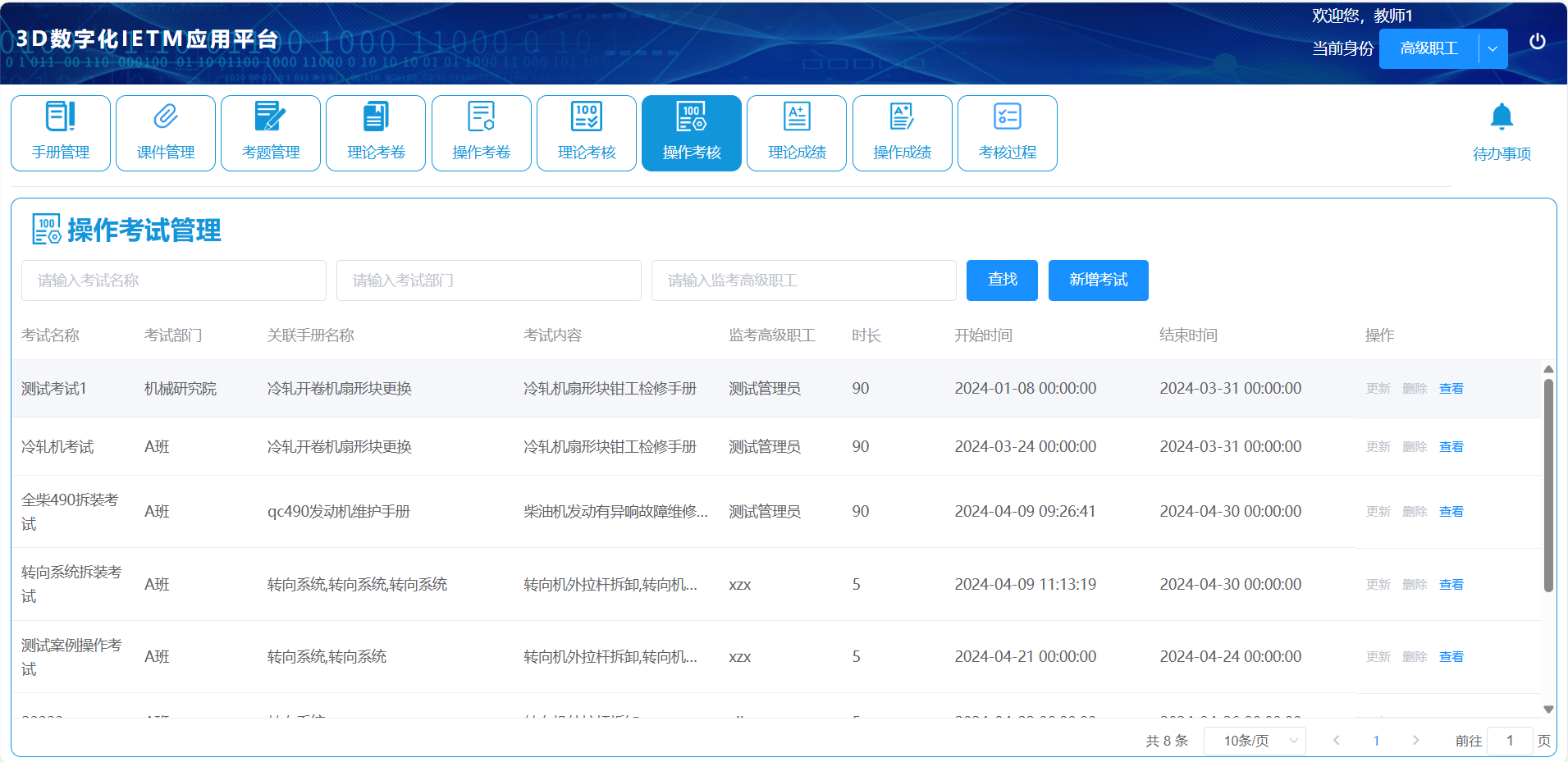 线上组织理论与实训考核,控制考试过程,对人员考核成绩统一管理,考核成绩结果详情查看,各考核点结果查看。