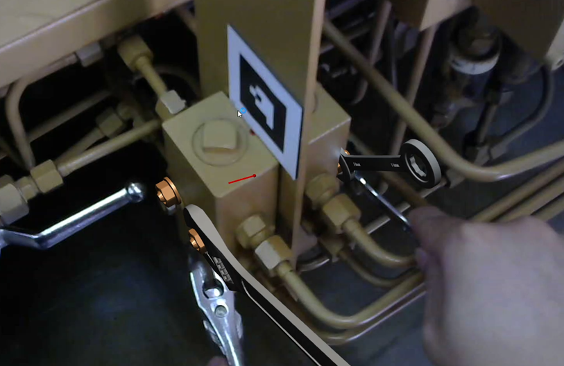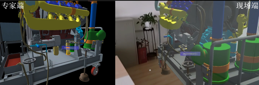 专家指导端与现场操作端可载入统一的3D电子交互手册,由专家在远程系统的三维虚拟模型上进行操作指导,将指导内容通过虚实融合方式叠加到现场端的真实设备上。